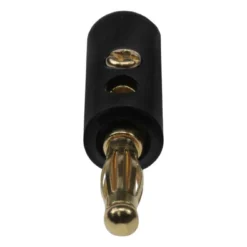 A banana plug is mainly used to insert speaker wire coming from an amplifier or receiver directly into the speaker. The banana plug is named after its shape. It is a slender, but bulging prong that is similar to a banana. However, unlike bananas, the banana plug is not bent, but straight. Other uses for the banana plug is to test electronic equipment – specifically used to terminate patch cords. It should be noted that the banana plug is the male version and the banana jack is referred to the female version of the plug.