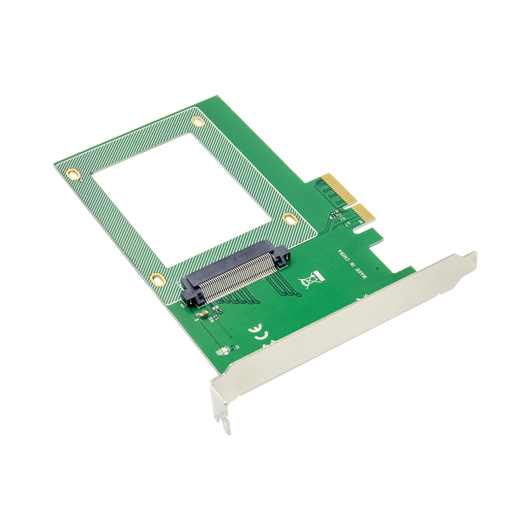This PCIe x4 U.2 SFF8639 2.5-inch NVMe SSD Adapter is connects directly to the motherboard, It has support with ultra-fast PCI Express V3.0 X4 lanes transmit bandwidth up to 32GT/S, and it can be support with U.2 SFF8639 2.5-inch SSD drive size. By this adapter can be improved system speed ,and improve the efficiency of office and entertainment.