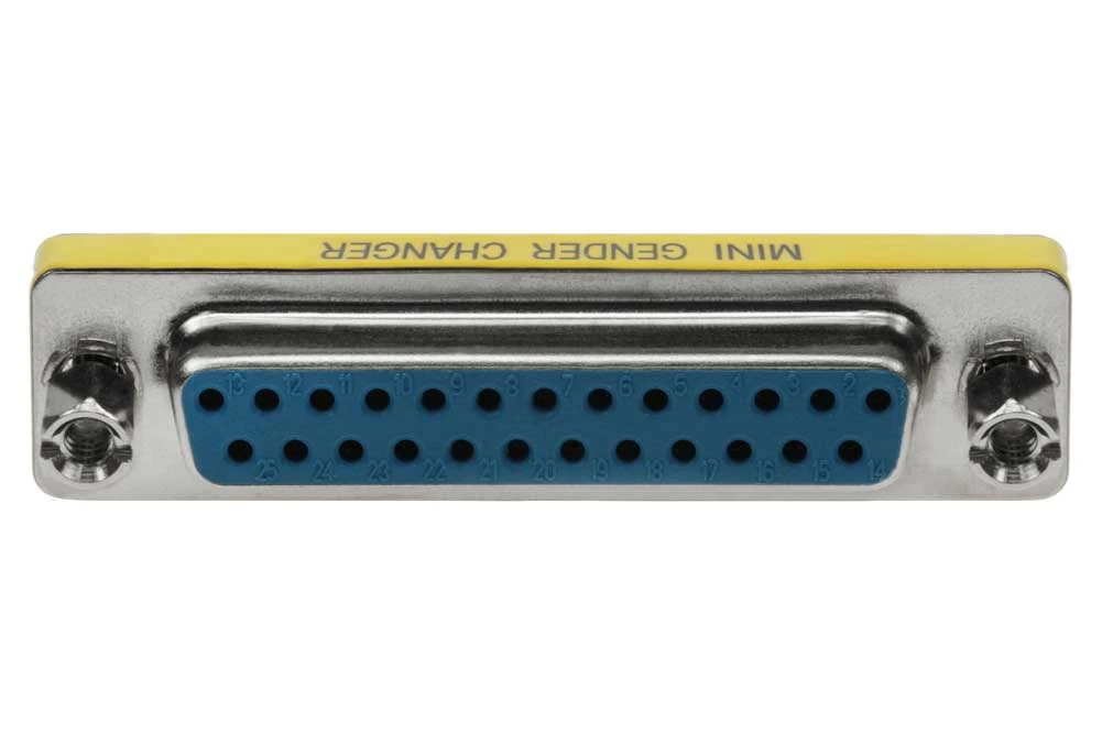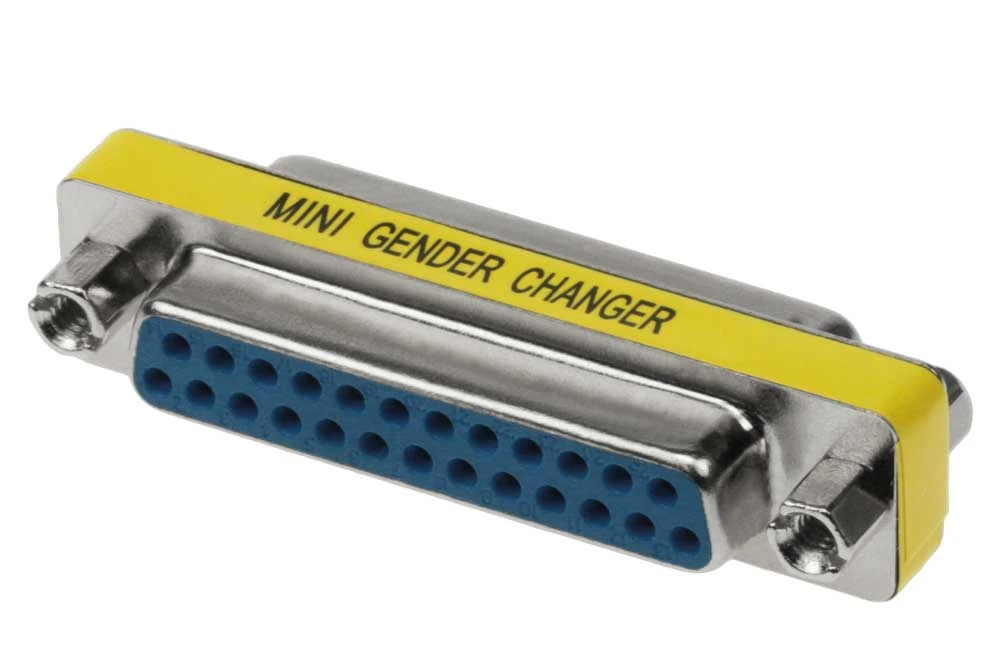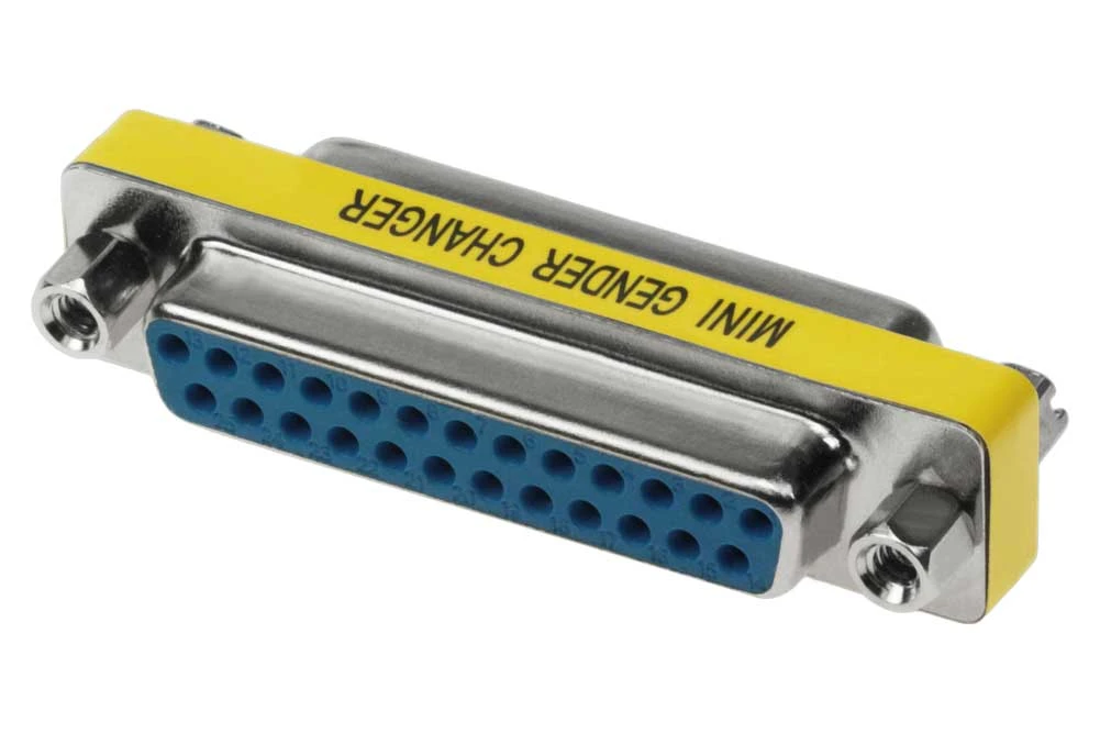 Save money and hassle of having to buy a new cable for each new application. This DB-25 Female/ Female gender changer converts a male cable or port into female. It allows two male cable to be connected. Application for any parallel, serial, game/midi or video port.
