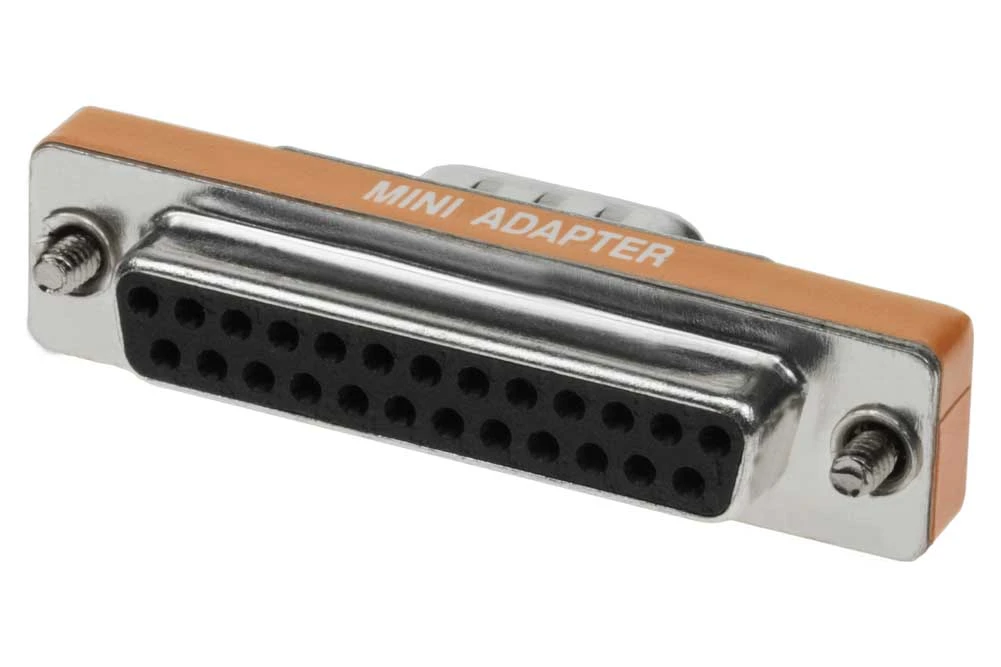 DB9 Male to DB25 Female. Type: Mini Type Low Profile Adapter. Use this adapter to make connections for DB9; DB25. Fully molded and protect against unwanted EMI/RFI.