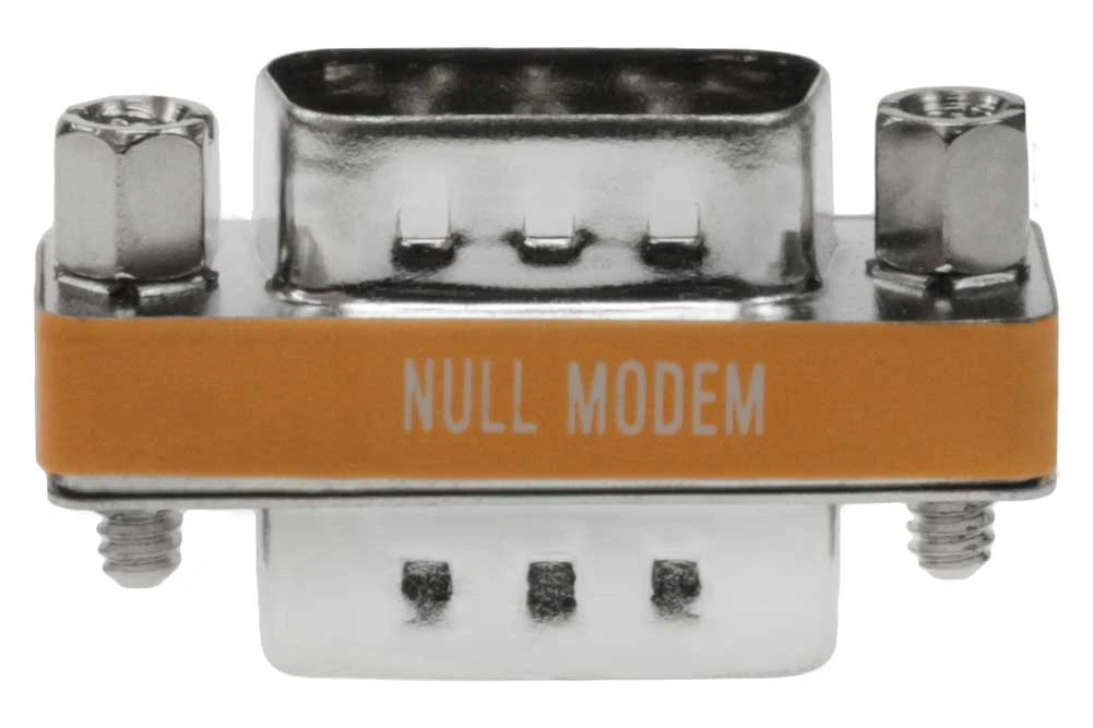 2 x DB9 Male. Type: Null modem Mini Adapter. Convert your existing serial cable into null modem (cross-over) cable. Fully molded and protect against unwanted EMI/RFI.