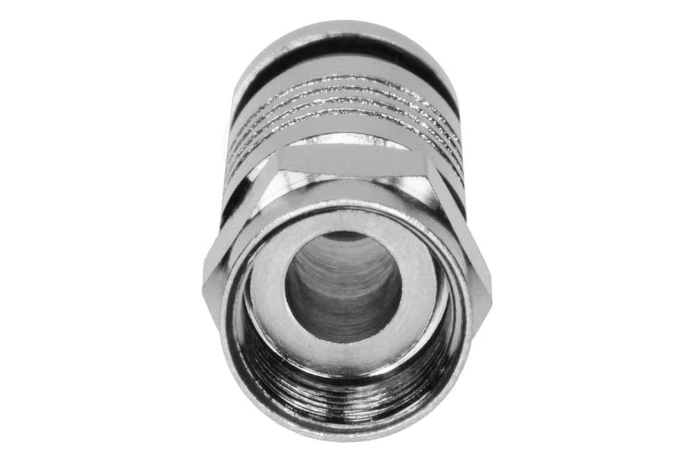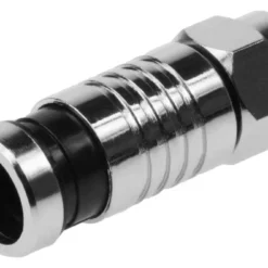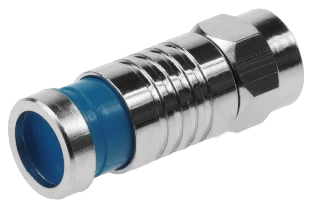 Connector: F Male Dual Shield RG6. Superior RF shielding. Sealed compression for watertight installation. Use with Lock & Seal Compression Tools. Band Color: black or blue.