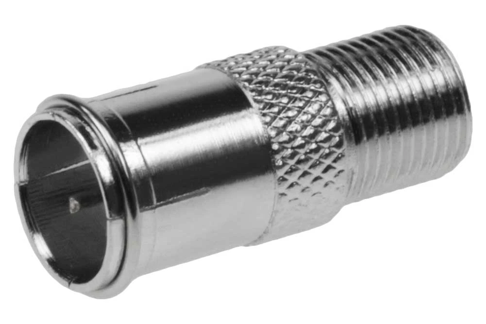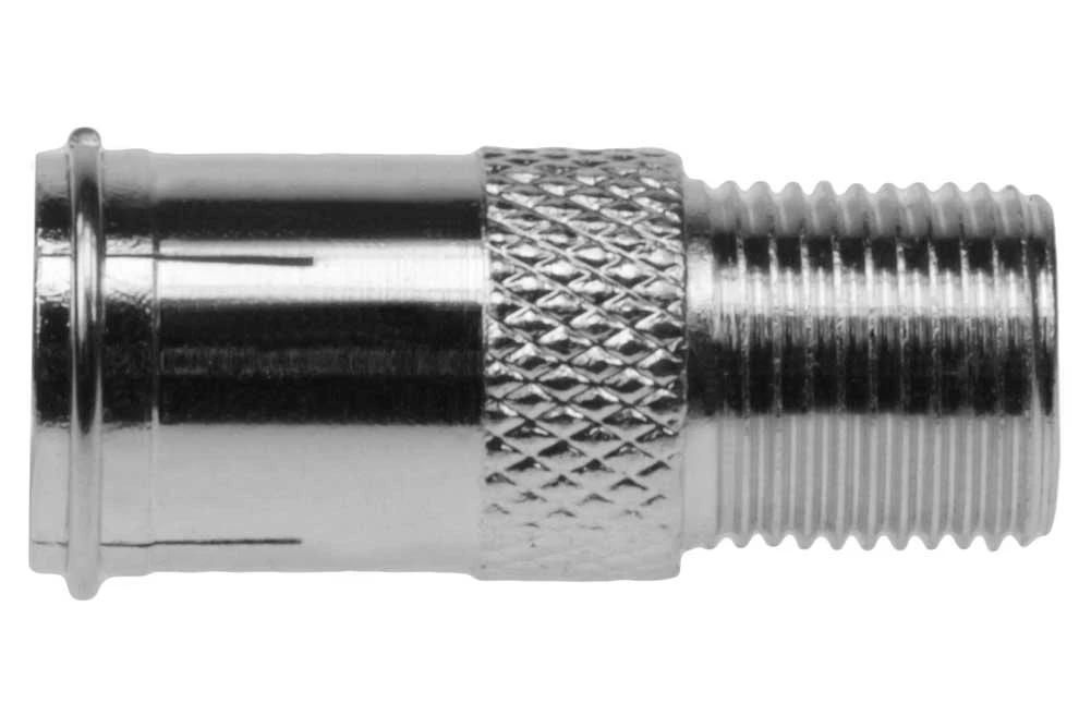 Used convert standard screw on “F” type connector into quick push-on “F” connector. Great for using in a tight location such as a TV or cable box in a cabinet.