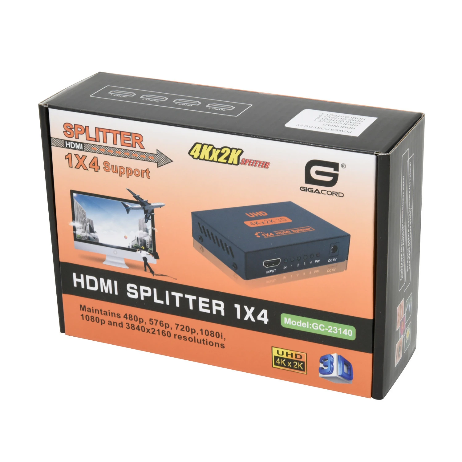 Gigacord 4-Port HDMI Powered Splitter 1080p 4K (1-in 4-Out)