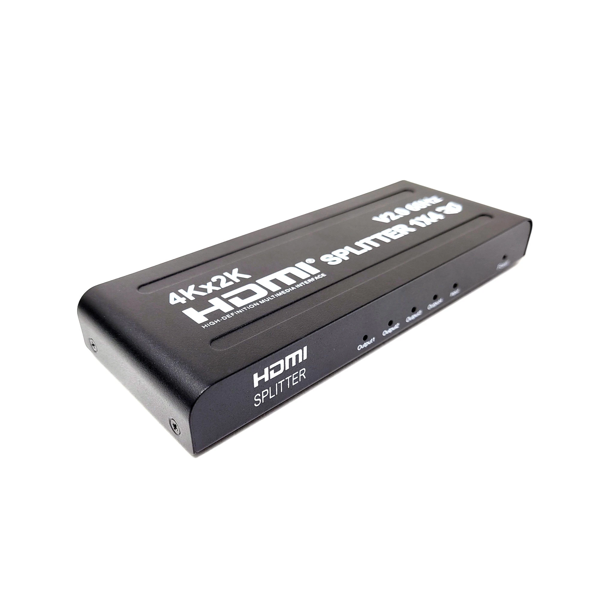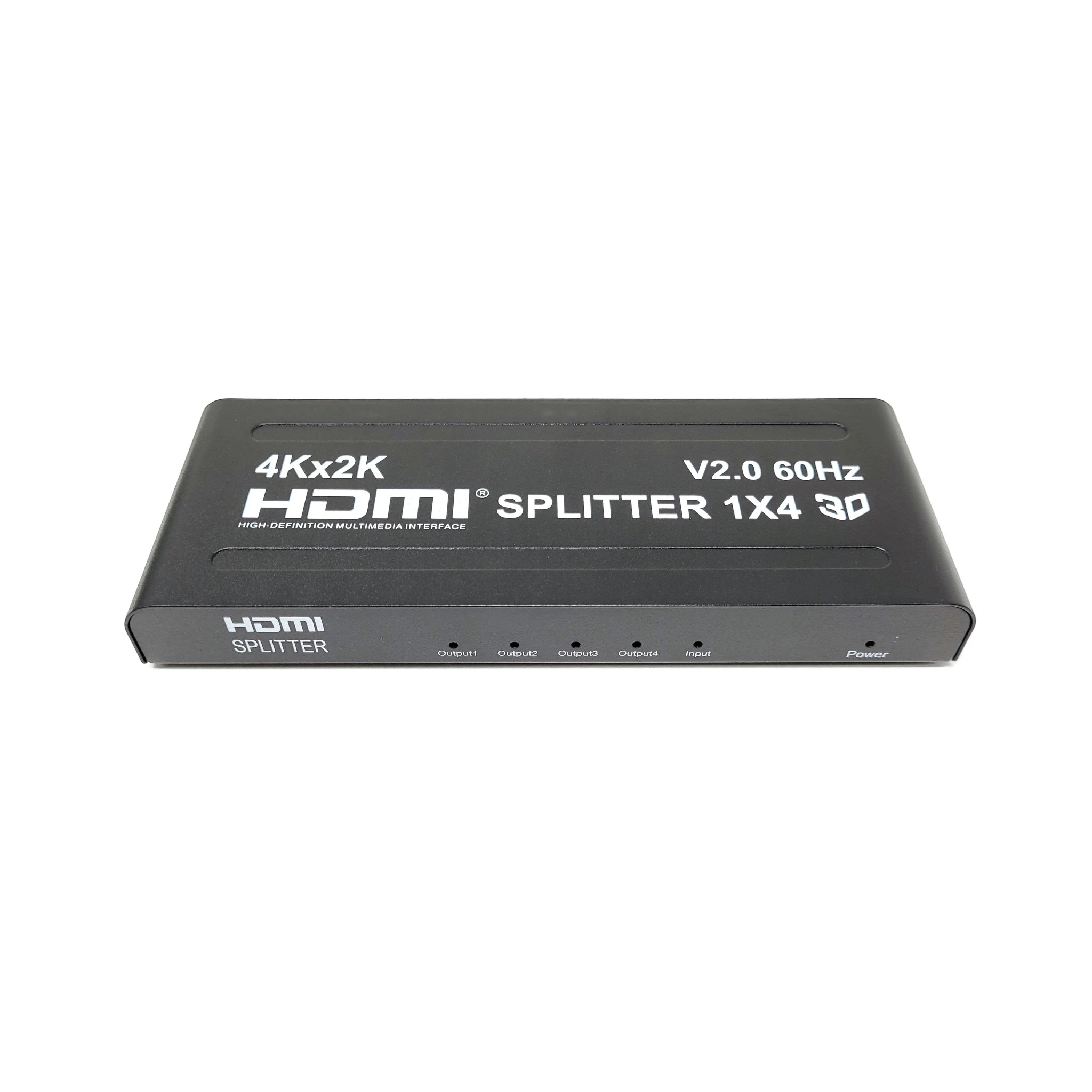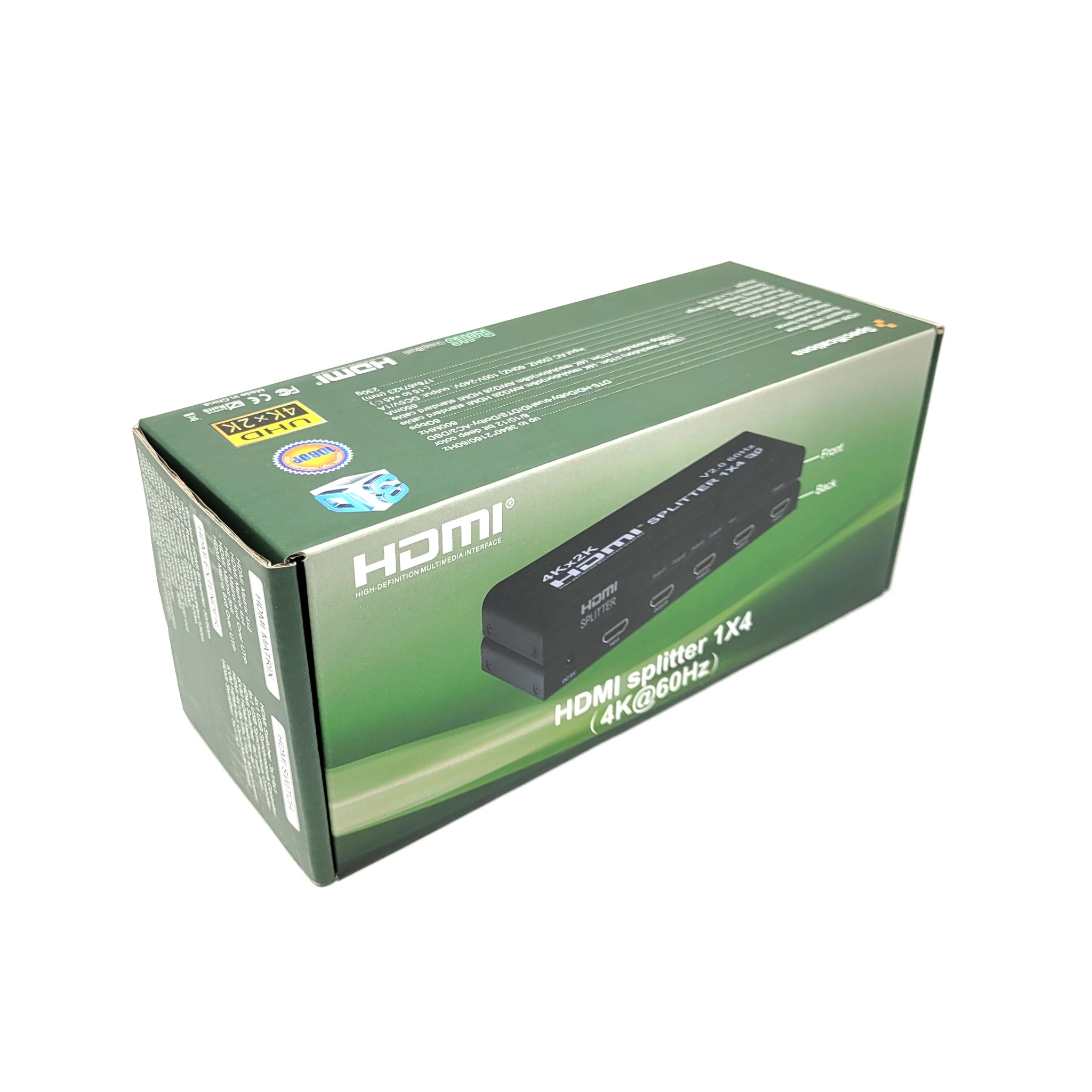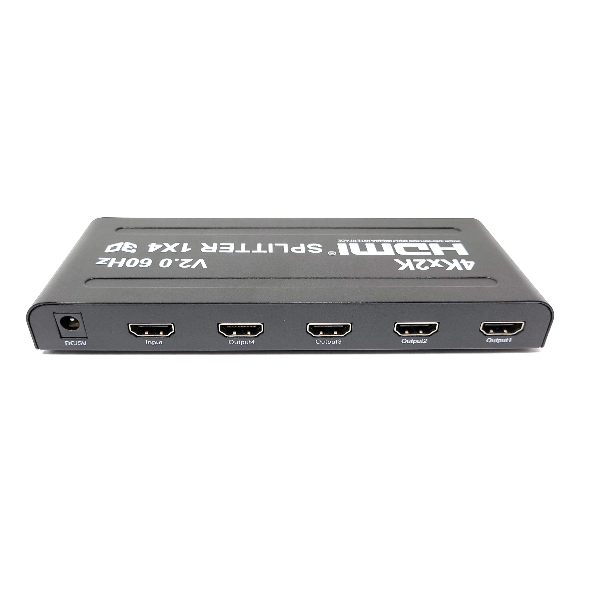 The 1×4 HDMI splitter uses a single HDMI source and outputs to two monitors, projectors, or TVs. It can also be used as a signal booster at the end of longer HDMI cables.