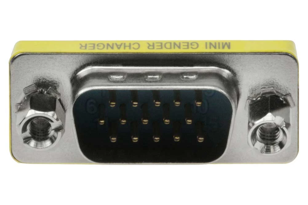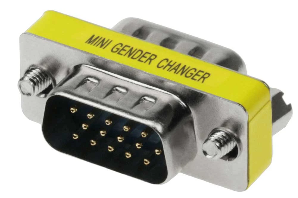 This HD15 Male/ Male gender changer converts a female cable or port into male. It allows two female cables to be connected.