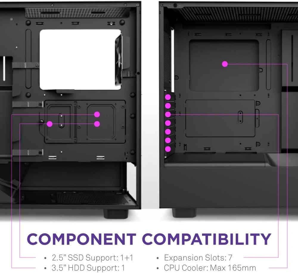 NZXT H5 Flow Compact ATX Mid-Tower PC Gaming Case – High Airflow Perforated Front Panel – Tempered Glass Side Panel – Cable Management – 2 X 120mm Fans Included – 280mm Radiator Support – Black