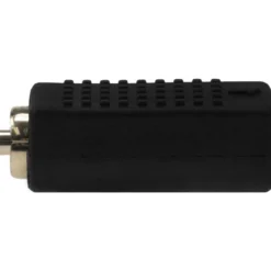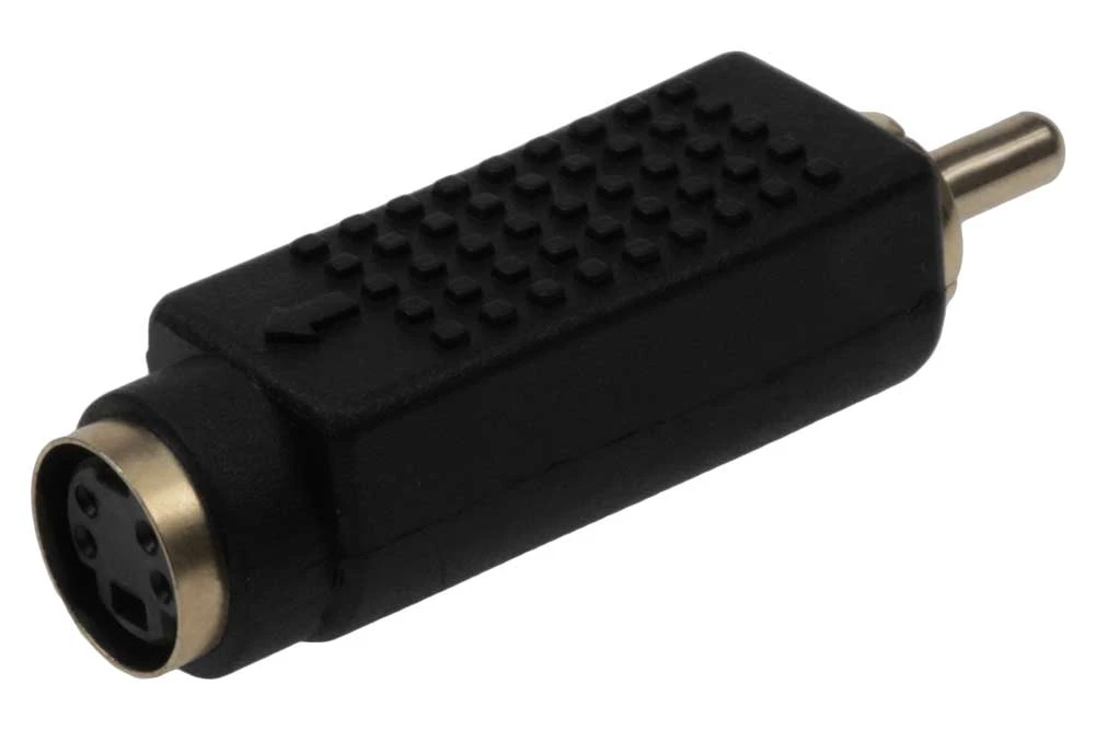 S-Video (VHS) Female to RCA Male. Black molded plastic construction. Gold-plated contacts