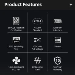 - Other high standard specifications: The power supply also features other high standard specifications, such as 100~240V full voltage, embossed wire, and 12VHPWR interface, which provide more stable and r