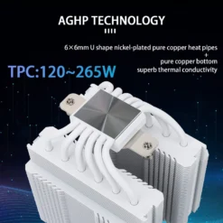 - 【AGHP technique】6×6mm heat pipes apply AGHP technique, Solve the Inverse gravity effect caused by vertical / horizontal orientation, cpu cooler TDP is 120 to 265W. 6 pure copper sintered heat pipes & PWM fan & Pure copper base&Full electroplating reflow welding process, When CPU cooler works, match with ultra-silent airflow fans, aim to extreme CPU cooling performance