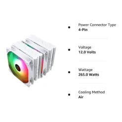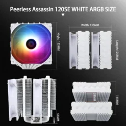 - 【Product specification】Thermalright PA120 SE ARGB White; CPU Cooler dimensions: 125(L)x135(W)x155(H)mm (4.92×5.31×6.1 inch); heat sink material: aluminum, CPU cooler is equipped with metal fasteners of Intel & AMD platform to achieve better installation, double tower cooling is stronger