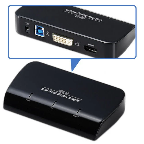 The USB 3.0 Display Adapter is a device which enables connection to second display device to a computer using USB 3.0 port. With this convenient design, it can connect up to 6 display devices to a computer without installing extra video cards. Once the driver has been installed, the USBattached monitor will be enabled immediately. No function key on the adapter and there is no need to reboot the operating system after unplugging the USB adapter. System performance is an important issue when using multiple monitors. Another benefit of this adapter is that it occupies little computer resource; ensuring users get quality display without comprising computer performance.