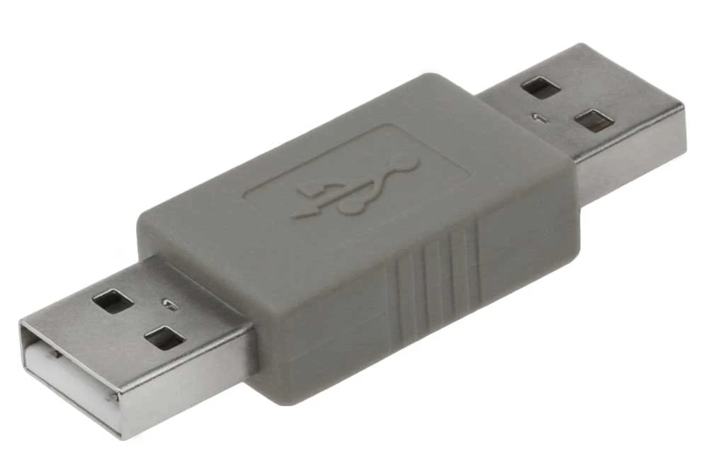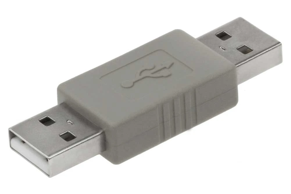 USB type A Male to USB type A Male Type Adapter. Fully molded design provides durability. Gold plated contacts provide excellent signal transmission. Easily convert existing cables to your needs.